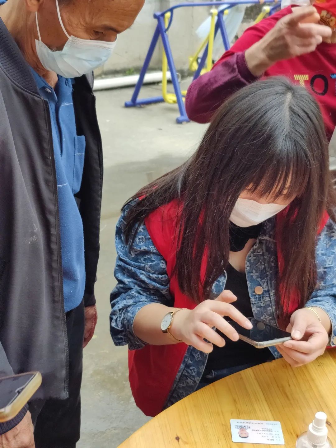 (右一李淑贞协助村民扫码)