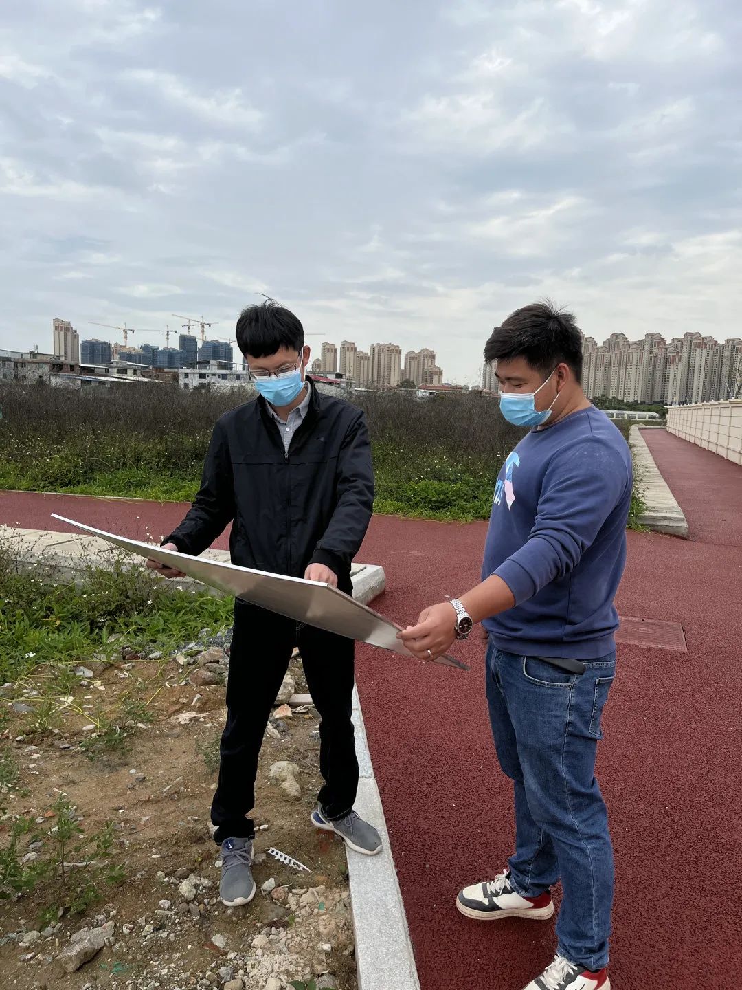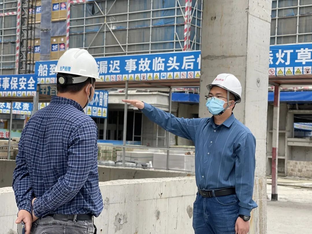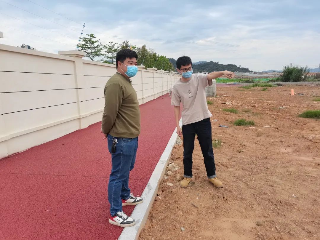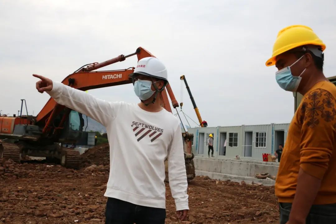 (右一黄钦豪在现场推进项目建设)