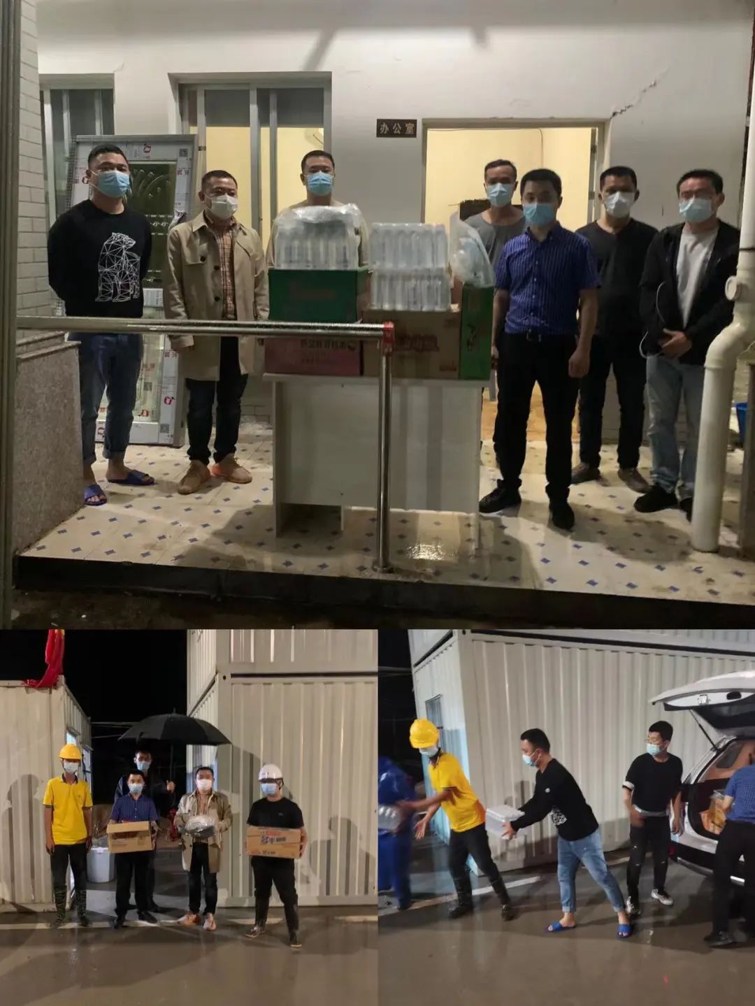 (后勤人员冒雨为一线建设提供物资保障)