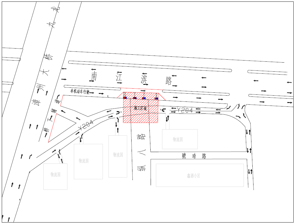 1、Y204路段所有车辆绕行(往物流园及施工车辆除外)。施工区域采取全封闭施工,禁止所有车辆在Y204道路封闭路段通行(施工车辆除外),禁止一切机动车辆在Y204道路停放(施工车辆除外)。
