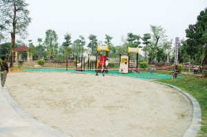 公园分民俗文化、儿童游乐、健身运动、驿站服务四个功能区。公园大门以闽南民间“龟印”为造型,象征吉祥如意;民俗文化广场以“大鼓凉伞”为主题,旨在传承漳州特有的大鼓凉伞风俗艺术,鼓励人们团结向上;儿童乐园的沙坑、滑梯、假山、树阵、凉亭,让儿童怡然称快;健身运动区的灯光篮球场、荔林棋社以及各种健身器材,是全民健身的好去处;公园驿站设有茶舍、售卖点、自行车出租等服务设施,方便了群众的游园活动;公园绿树成荫、绿草如茵、姹紫嫣红、花香鸟语,更有绿道绕园、亭廊相接、步道穿梭,是一个集生态、文化、休闲、健身为一体、闽南风格浓郁、百花园式的城市综合性公园。