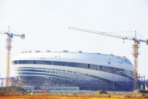 闽南日报讯(记者 蔡文原 陈铃清 实习生 陈育贤 文/图)1月17日,漳州奥林匹克体育中心主要场馆之一的网球馆主体工程外部装修顺利完工并拆除外部脚手架,转入完善内部装修阶段,预计今年3月底竣工。