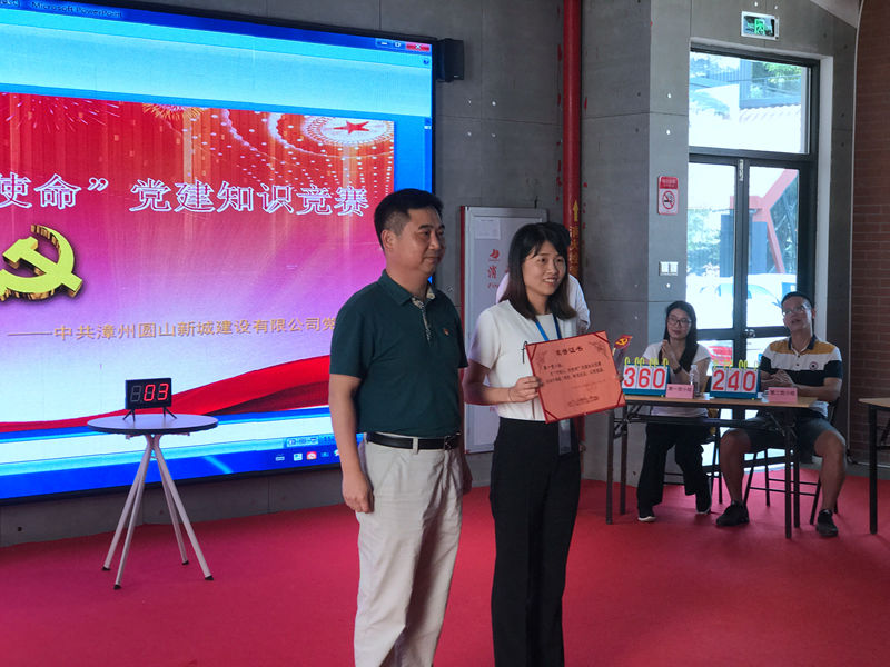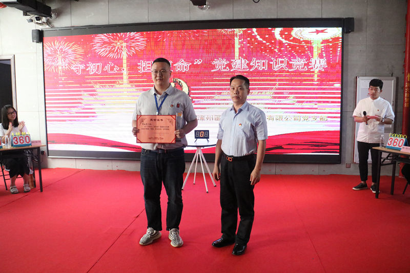 为迎接建党98周年华诞,纪念新中国成立70周年,全面贯彻落实习近平新时代中国特色社会主义思想和党的十九大精神,创新学习方式,以赛促学、以学促用,保持公司党员、积极分子先进性,6月21日下午,漳州太阳成集团tyc234cc建设有限公司党支部举办“守初心、担使命”党建知识竞赛活动。漳州高新区党工委委员、管委会副主任陈建进,党群工作部部长林志旭,党群工作部副部长、机关党委专职副书记陈金铭,太阳成集团tyc234cc建设有限公司党支部书记、董事长、总经理陈世忠,公司中层及以上干部和全体党员参加此次活动。
