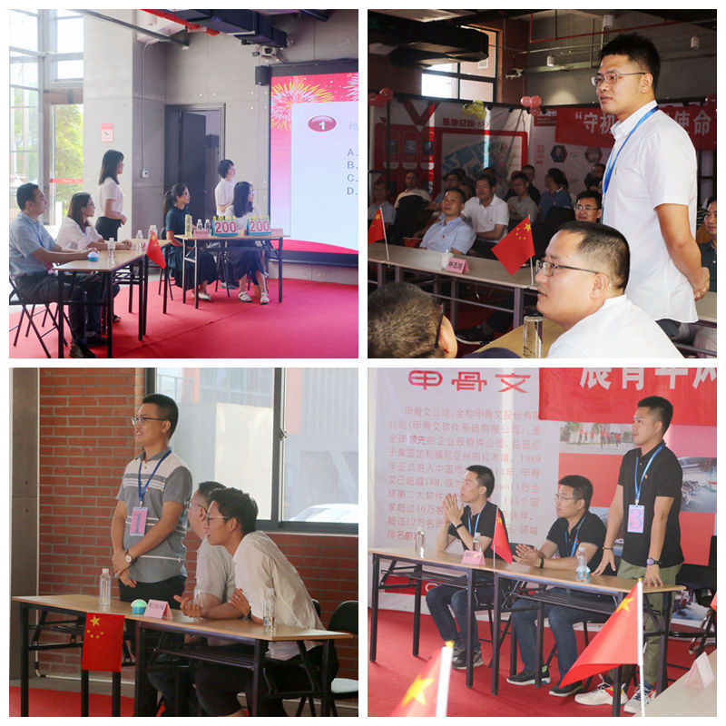 本次党建知识竞赛活动分为必答题、抢答题、观众互动和风险题四个环节,竞赛内容涉及习近平新时代中国特色社会主义思想、党的十九大精神等相关知识。有4支队伍参赛,由公司支部4个党小组分别派出3名党员代表组成。